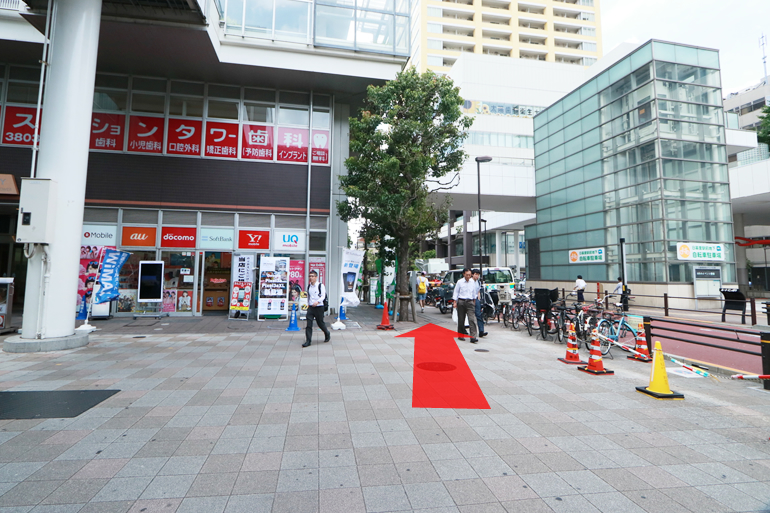 日暮里駅東口を出て左にいきます。矢印の通りに進みます。