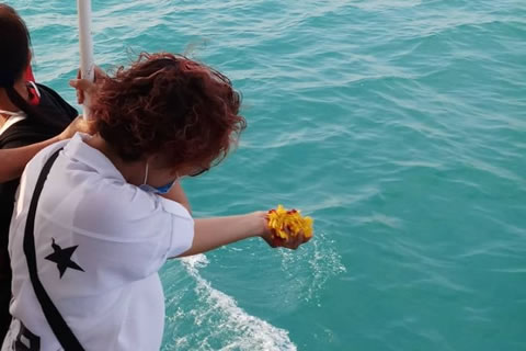 母の遺骨を散骨させていただきました。水溶性の紙につつまれて、海にとけていく姿をみて、肩の荷がおりました。