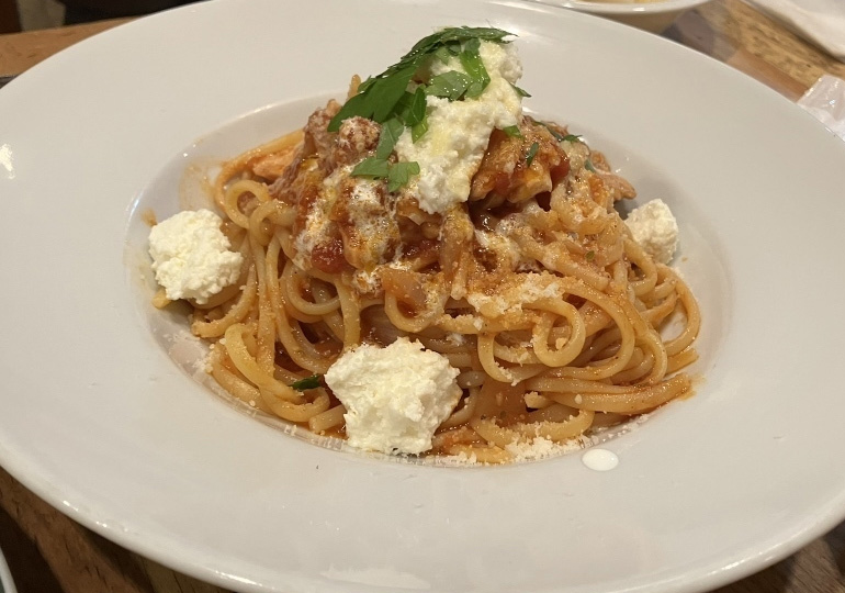 「玻璃家(ボーリージャー)」、「こむぎこ」(イタリア料理)「食堂 もり川」など美味しいお店が多いです。写真は、イタリアン料理がおいしい「こむぎこ」さんのパスタです。クリームパスタ系が最高です。