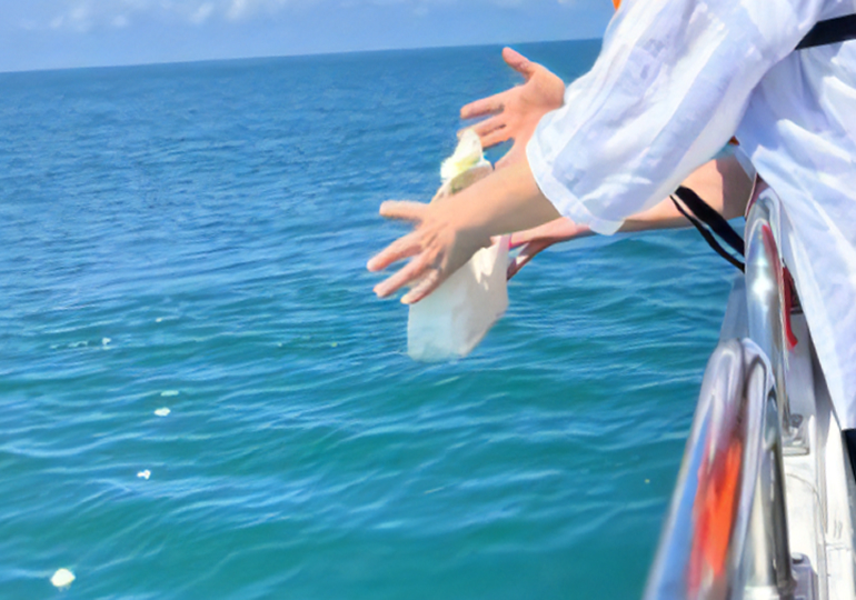 東京湾羽田沖やディズニーゲートブリッジ沖にて委託海洋散骨をしております。海までついていく必要はありません。