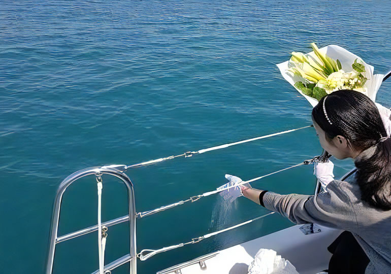 他の家族と乗船しない完全プライベート散骨をご提供しております。