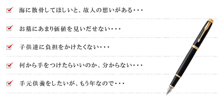 など散骨のご依頼やご相談はじつに様々です。