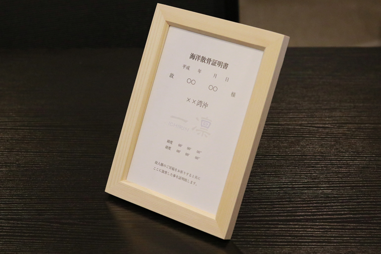 散骨後は、「証明書」を発行させていただきます。ご希望の方は、散骨をした時の画像を送らせていただきます。