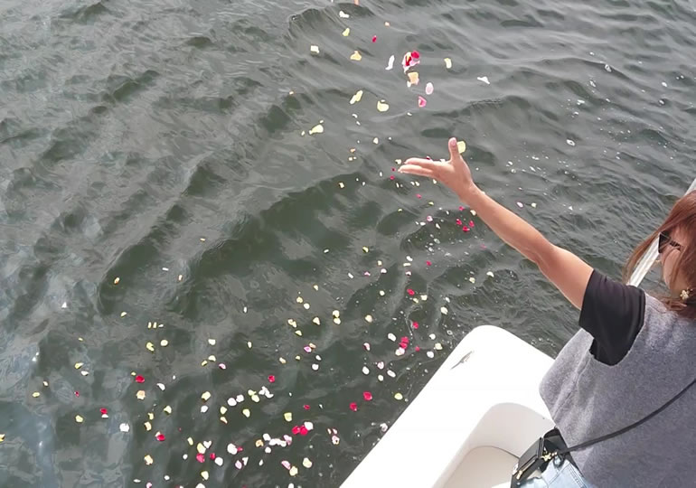 貸し切りの小型船舶にて、ご自身の手で散骨出来ます。