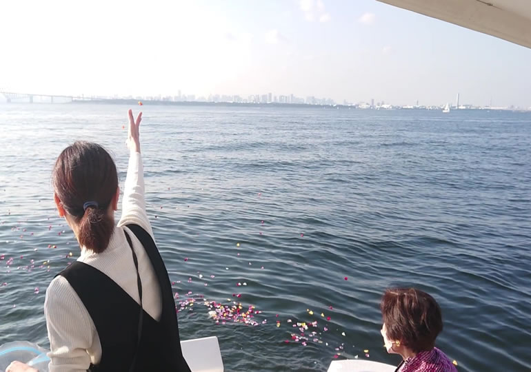東京湾羽田沖やディズニーゲートブリッジ沖にて委託海洋散骨をしております。海までついていく必要はありません。